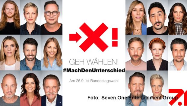 In vier Wochen, am 26. September, wird der 20. Deutschen Bundestag gewählt. Ein spannendes Rennen zeichnet sich ab, denn derzeit liegen CDU/CSU, SPD und Bündnis 90/Die Grünen laut Umfragen in der Wählergunst nahezu gleichauf. Die Seven.One Entertainment Group, die selbst u.a. mit einem TV-Triell der Kanzlerkandidatin und -kandidaten umfassend über das anstehende Votum berichtet, startet nun eine groß angelegte „Geh wählen!“-Kampagne. Unter dem Hashtag „#MachdenUnterschied“ wird das Publikum plattformübergreifend dazu aufgerufen, zur Wahl zu gehen.