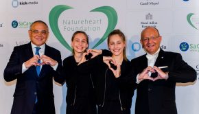 Beim Charity-Dinner der Natureheart Foundation for Kids in Berlin stellten sich der Beiratsvorsitzende Felix Magath, die „Hanni & Nanni“-Zwillinge Rosa